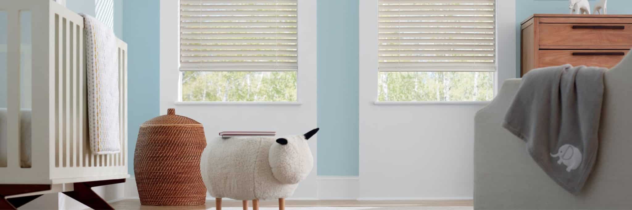 Fauxwood blinds are well-suited for all rooms, especially bathrooms and kitchens with their moisture-resistant and durable slats.